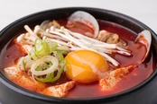 牛骨をじっくり煮込んだベースのスープを元に本格的な韓国のスンドゥブスープにしました